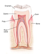 Pulp. Soft tissue on the inside of the tooth that contains the nerve, blood supply, and the ability to produce dentin.